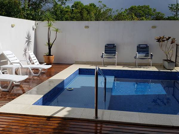 - piscina privativa com deck de madeira e espreguiçadeiras;